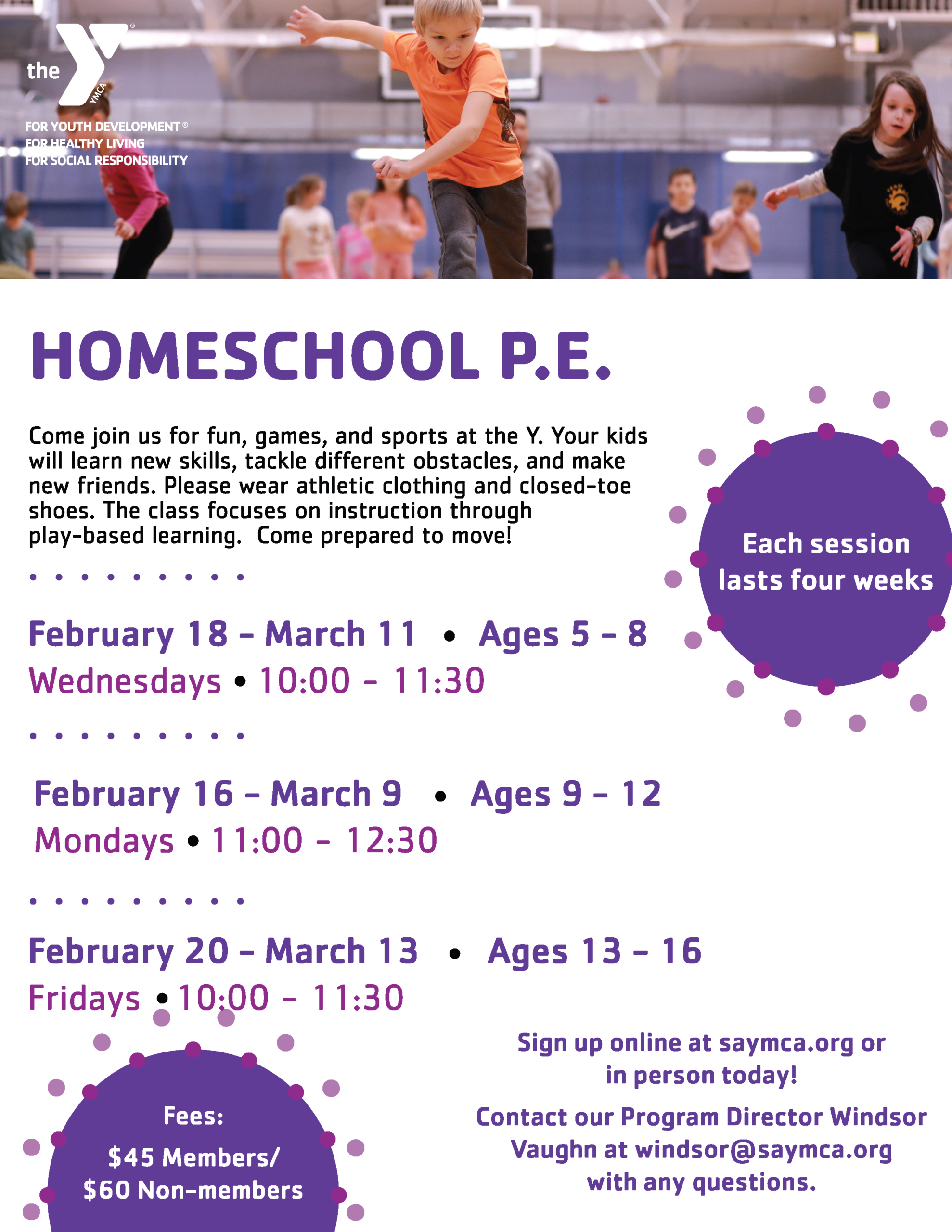 Contact Windsor Vaughn at windsor@saymca.org with questions.